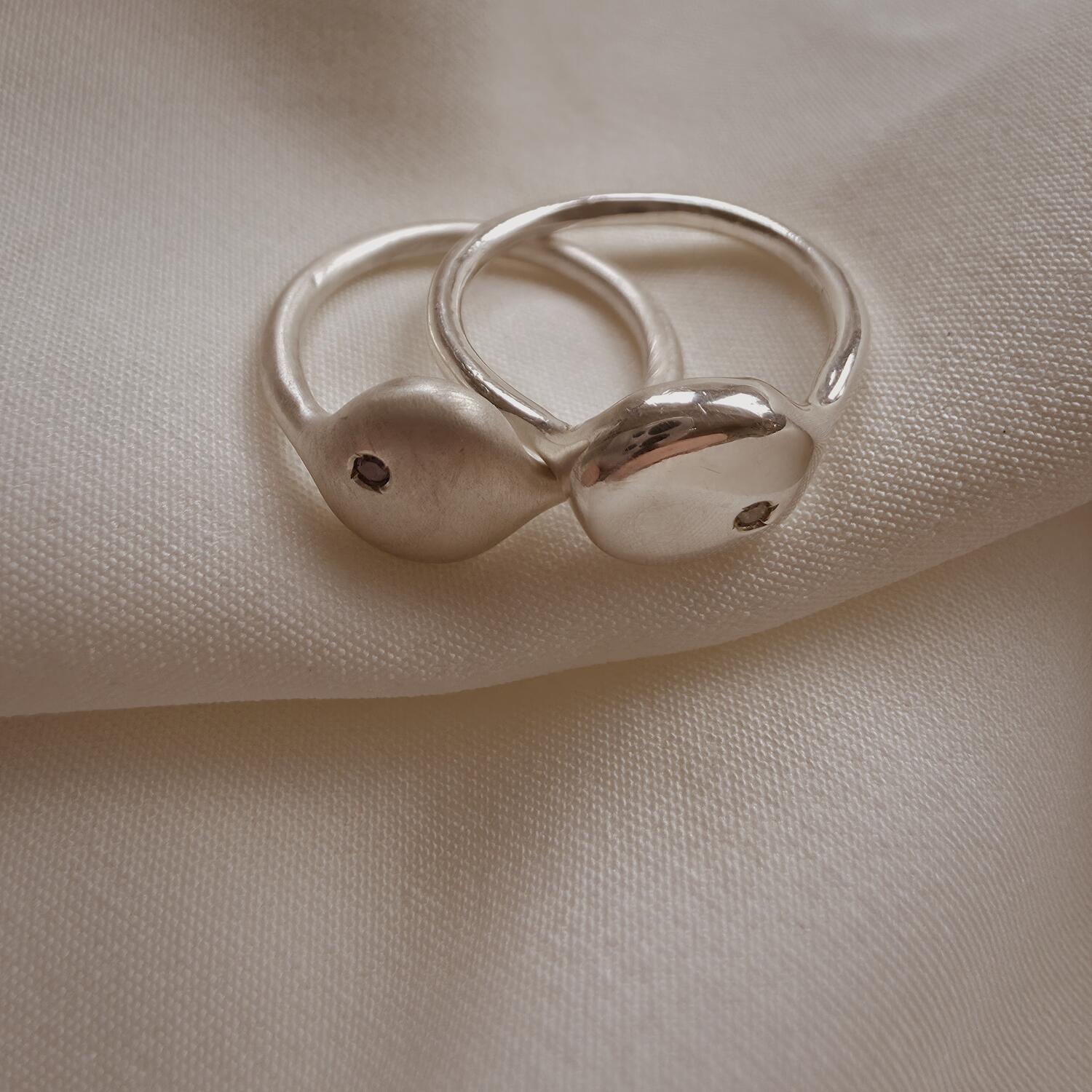 Anello in argento realizzato con la tecnica della fusione a cera persa. Presenta un piccolo zircone laterale di 1,5 mm che rappresenta il mese di nascita. Disponibile in 2 diverse finiture.